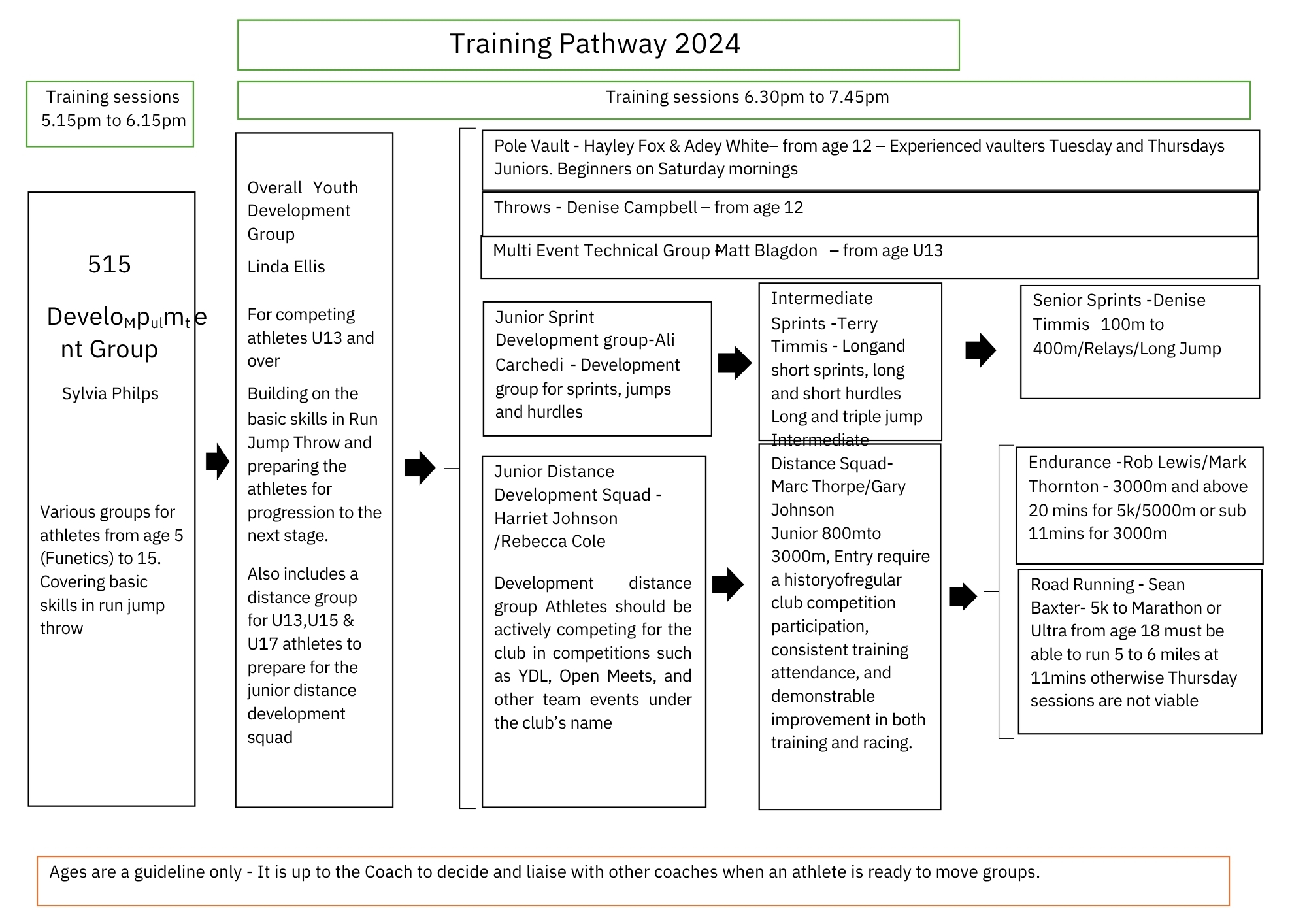 Long Jump/Hurdling coaching also provided within both groups.